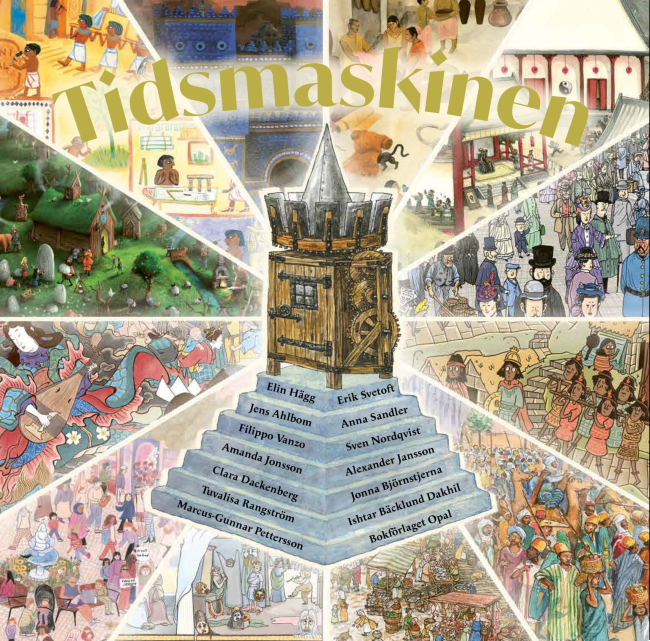 Tidsmaskinen Text: Tuvalisa Rangström Bilder: Jens Ahlbom, Jonna Björnstjerna, Ishtar Bäcklund Dakhil, Clara Dackenberg, Elin Hägg, Alexander Jansson, Amanda Jonsson, Sven Nordqvist, Marcus-Gunnar Pettersson, Anna Sandler, Erik Svetoft, Filippo Vanzo. Opal 2025 ISBN 9789172268630 29 sidor